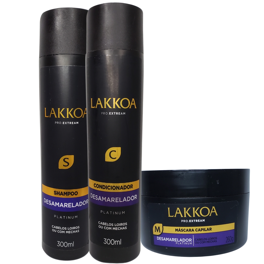 O kit lakkoa pro.extream desamarelador Proporciona brilho platinado, anti frizz e aspecto natural aos fios .