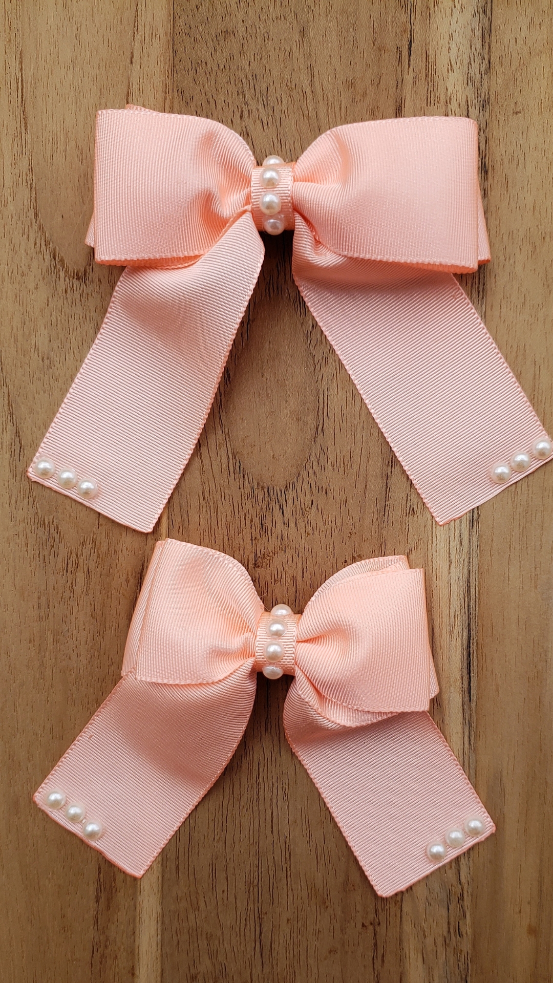 01- Laço de Cabelo Tal Mãe Tal Filha Pérola Salmon (2 unidades)