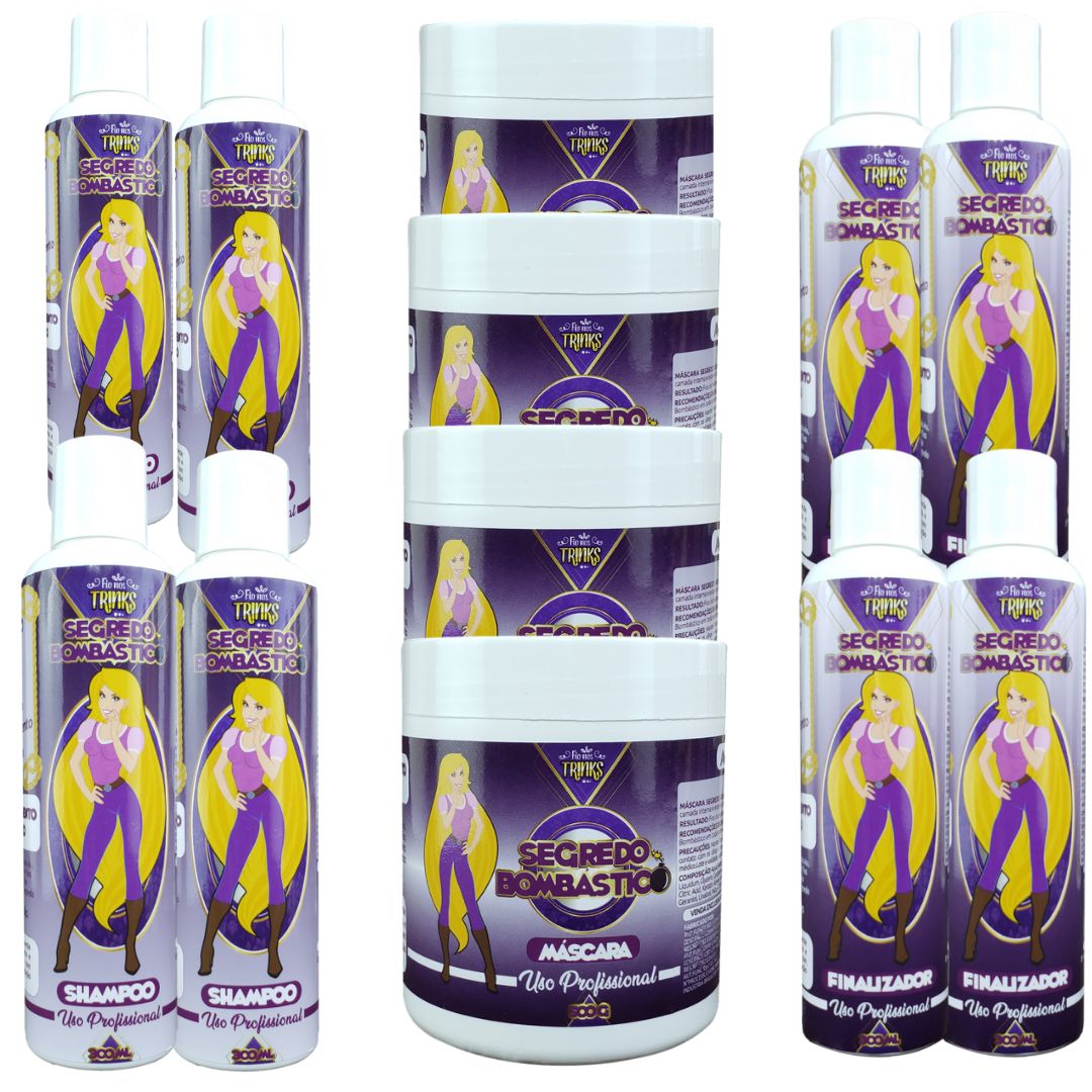 Após o uso de toda a linha segredo bombástico, com o cabelo limpo e úmido aplicar uma quantidade do produto na Palma das mãos conforme o comprimento e espessura dos fios e Espalhe uniformemente por todo o cabelo finalize com escova e prancha ou como de costume.