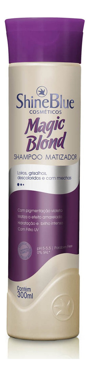 A linha Magic Blond Shine Blue foi elaborada para eliminar o tom amarelado indesejado dos cabelos com mechas e descoloridos. Possui capacidade de matização, fornecida por pigmentos de alta performance. Promove intensa hidratação pela ação do D-Pantenol e reposição de massa através da combinação de 9 aminoácidos reconstruindo a fibra capilar. Contém protetores contra o raio UV, confere sedosidade e brilho intenso.
