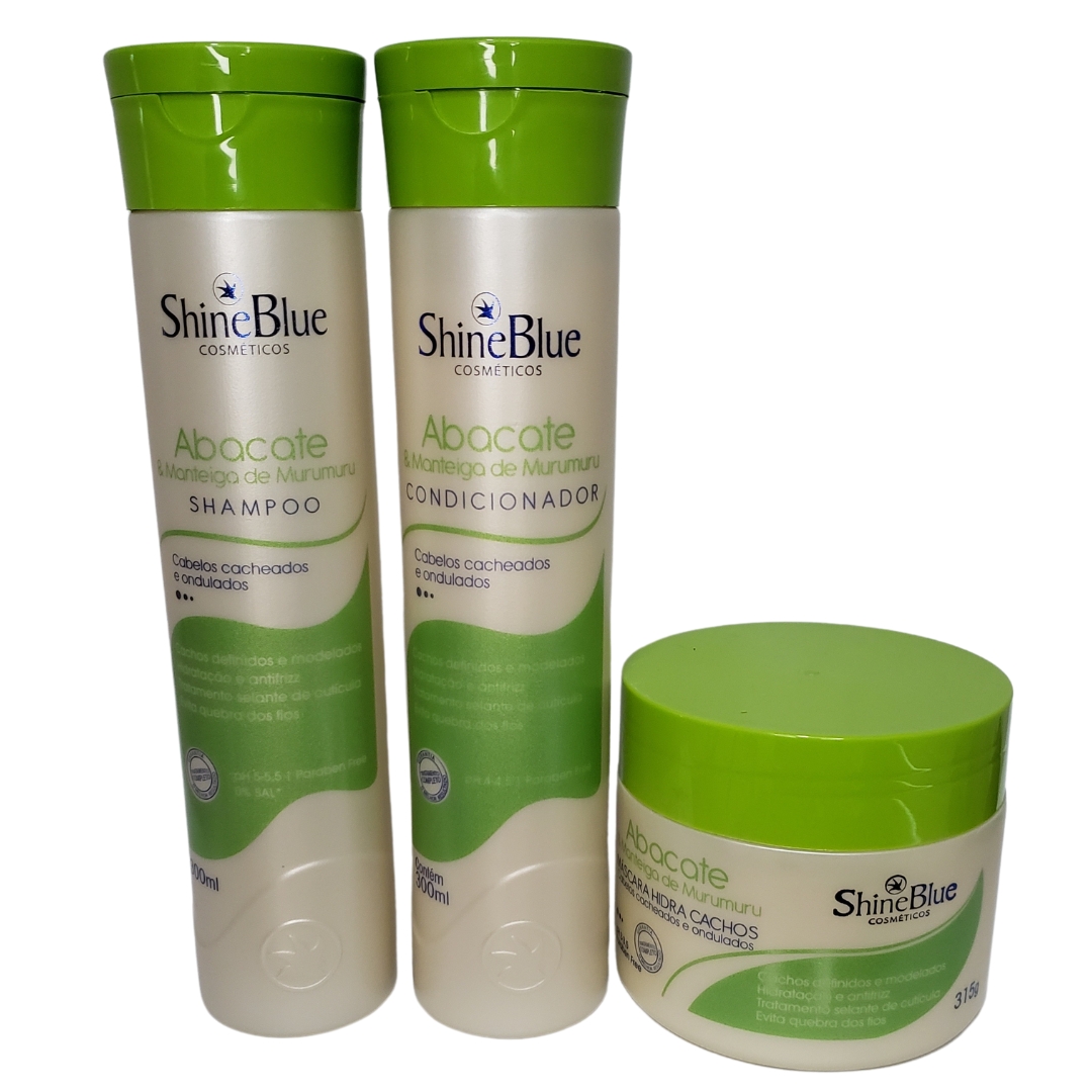 A linha Abacate e Manteiga de Murumuru Shine Blue, foi desenvolvida pensando especialmente nos cabelos cacheados e ondulados. Sua fórmula possui ativos que além de hidratar, define e modela os cachos, deixando um aspecto natural, macio e com muito brilho.